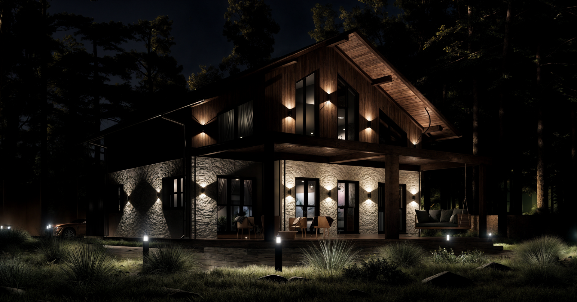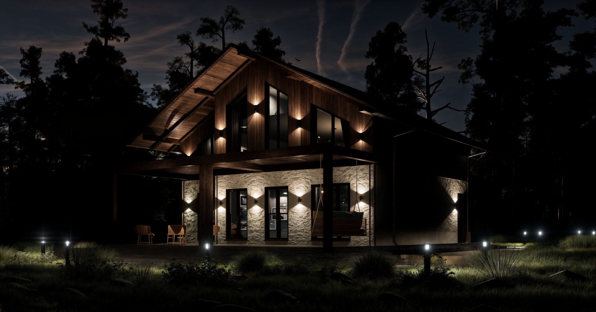 Фундамент + стены + крыша + окна + двери + техническая лестница